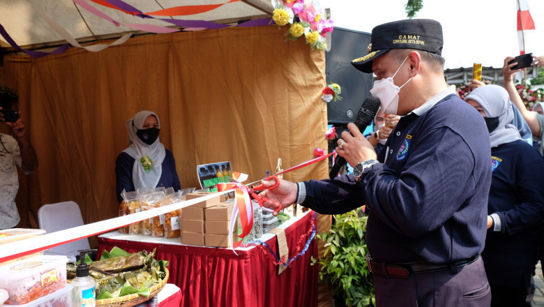 Camat Cipayung Hasan Nurdin saat membuka kegiatan Cipayung Expo 2021 di Halaman Kantor Kecamatan Cipayung, Jumat (08/10/21). (Foto: JD 01/Diskominfo)