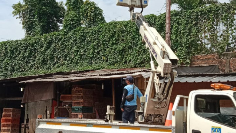 Dinas Perhubungan Kota Depok sedang memasang lampu Penerangan Jalan Umum (PJU) di Area Pasar Kemiri Muka, kemarin (26/01/22). (Foto: istimewa).