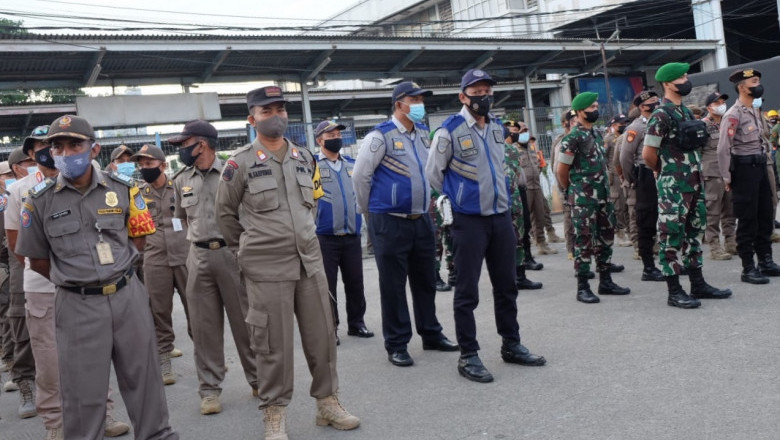 Personel gabungan saat melakukan apel persiapan penertiban bangunan milik pedagang kaki lima (PKL) di sisi barat bawah jembatan layang atau fly over Arif Rahman Hakim (ARH). (Foto: JD01/Diskominfo)