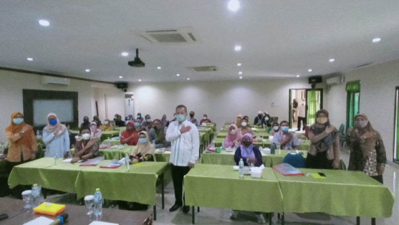 Asisten Pemerintahan dan Kesejahteraan Sosial (Pemkesos), Sri Utomo berada di tengah-tengah peserta Sekolah Ayah Bunda Spesial, yang digelar di Wisma Hijau, Cimanggis, belum lama ini. (Foto: istimewa).