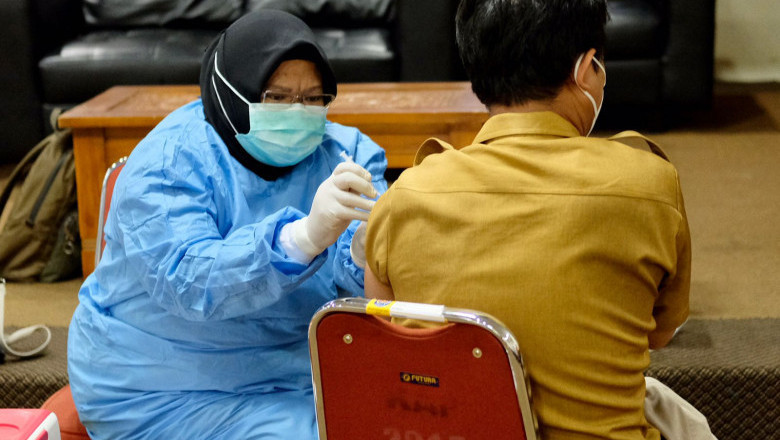 Pelaksanaan vaksin booster untuk ASN dan guru di Gedung Perpustakaan. (Foto: JD04/Diskominfo)