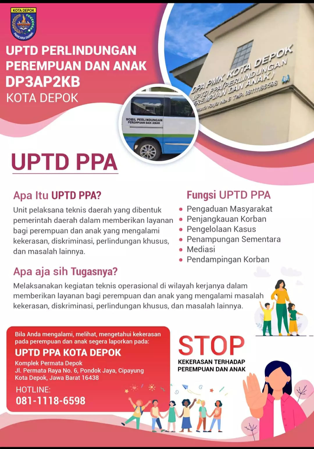 pojokdepok.com – Unit Pelaksana Teknis Dinas (UPTD) Perlindungan Perempuan dan Anak (PPA) pada Dinas Pemberdayaan Perempuan Perlindungan Anak, Pengendalian Penduduk, dan Keluarga Berencana (DP3AP2KB) Kota Depok membuka layanan pengaduan untuk membantu permasalahan kekerasan terhadap perempuan dan anak. Masyarakat bisa mengakses layanan tersebut dengan menghubungi ke hotline UPTD PPA di nomor 08111186598.