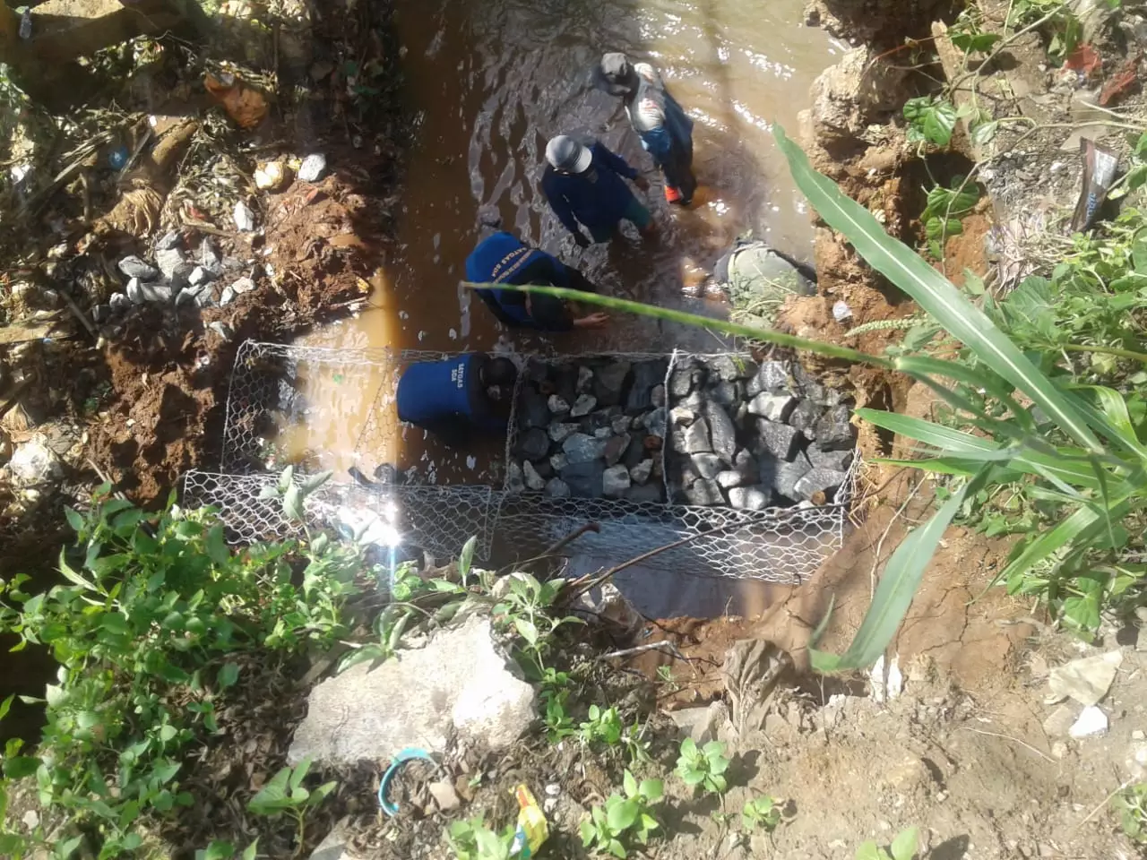 pojokdepok.com – Satuan Tugas (Satgas) Dinas Pekerjaan Umum dan Penataan Ruang (DPUPR) Depok memasang bronjong di lokasi longsor Kali Cabang Tengah RT 04, RW 01 Kelurahan Tanah Baru, Kecamatan Beji. Bronjong tersebut dipasang sesuai dengan tinggi longsoran yaitu 7 meter.