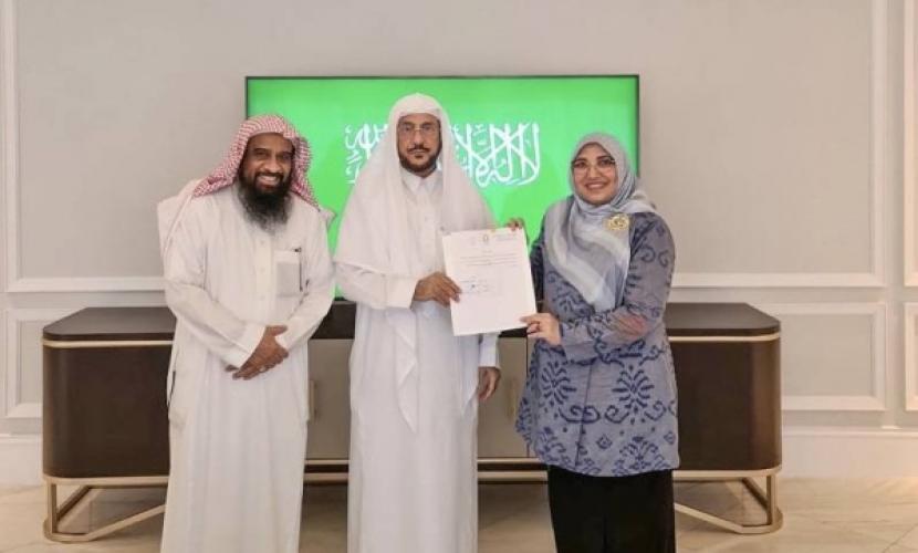 pojokdepok.com, JAKARTA — Menteri Urusan Islam Arab Saudi Abdullatif Al-Sheikh menyerahkan dukungan pembangunan masjid Fakultas Ilmu Tarbiyah dan Keguruan Universitas Syarif Hidayatullah atau UIN Jakarta, Rabu (21/12/2022). Dukungan tersebut diterima Direktur Universitas Profesor Amani Lubis dalam pertemuan di Jakarta.