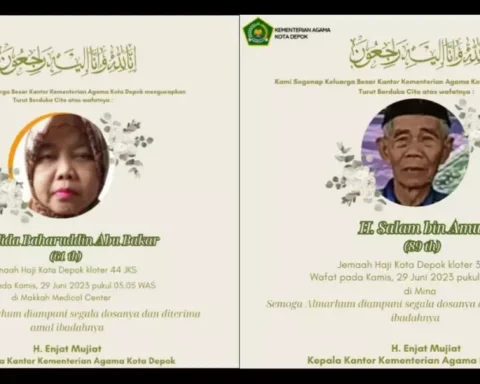pojokdepok.com – Dua jemaah haji asal Kota Depok meninggal dunia saat melakukan ibadah haji tahun ini pada Kamis (29/06). Kedua jemaah tersebut tercatat dalam Kelompok Terbang (Kloter) 44 JKS dan 31 JKS. Kepala Seksi (Kasi) Penyelenggara Haji dan Umrah (PHU) Kantor Kementerian