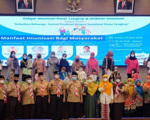 Wisuda Imunisasi kepada 11 balita perwakilan dari 11 kecamatan. (Foto: JD04/Diskominfo) pojokdepok.com – Sebanyak 11 balita yang merupakan perwakilan dari setiap kecamatan di Kota Depok mengikuti wisuda imunisasi. Balita tersebut sudah melengkapi imunisasi dasar lengkap sejak usia 0 bulan. Kepala Dinas Kesehatan
