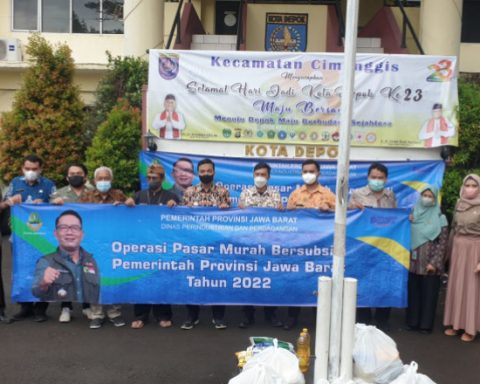 Pasar murah bersubsidi yang diadakan oleh Pemerintah Provinsi Jabar di Kecamatan Cimanggis, Kamis (28/04/22). (Foto: istimewa). pojokdepok.com – Pemerintah Provinsi (Pemprov) Jawa Barat (Jabar) melalui Dinas Perindustrian dan Perdagangan (Disperindag) melaksanakan Operasi Pasar Murah (OPM) bersubsidi di Kecamatan Cimanggis. Sebanyak 3.910 paket