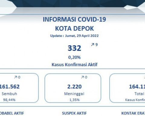 Data perkembangan kasus Covid-19 di Kota Depok per 29/04/22. (Foto: istimewa). pojokdepok.com– Pemerintah Kota (Pemkot) Depok kembali memperbarui data perkembangan kasus Covid-19 di Kota Depok. Berdasarkan data yang dirilis per tanggal 29 April 2022, terjadi penurunan yang signifikan pada kasus konfirmasi positif.