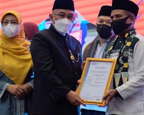 Wali Kota Depok, Mohammad Idris menyerahkan Sertifikat SNI 8152:2021 kepada Kepala Unit Pelaksana Teknis Dinas (UPTD) Pasar Sukatani dan Tugu saat Puncak Acara Hari Jadi Ke-23 Kota Depok, kemarin (27/04/22). (Foto: JD 04/Diskominfo) pojokdepok.com – Pasar Sukatani dan Tugu di Kota Depok ditetapkan