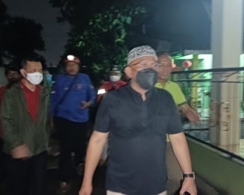 Wali Kota Depok, Mohammad Idris didampingi Kepala Disrumkim Kota Depok Dudi Mi’raz dan Camat Pancoran Mas, Syaiful Hidayat saat meninjau lokasi terdampak bencana angin puting beliung di RW 03 Kelurahan Rangkapan Jaya, Kecamatan Pancoran Mas, Minggu (15/05/22). (Foto: Diskominfo) pojokdepok.com – Wali