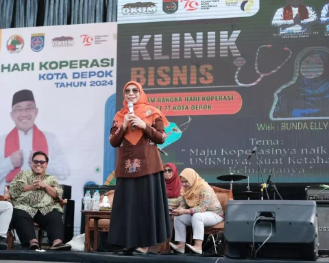 pojokdepok.com – Ketua Dewan Kerajinan Nasional Daerah (Dekranasda) Kota Depok, Elly Farida menjadi narasumber dalam acara talkshow klinik bisnis bertemakan Maju Koperasinya, Naik Kelas UMKM-nya, Kuat Ketahanan Keluarganya. Talk show ini merupakan rangkaian acara peringatan Hari Koperasi tingkat Kota Depok, di Alun-alun