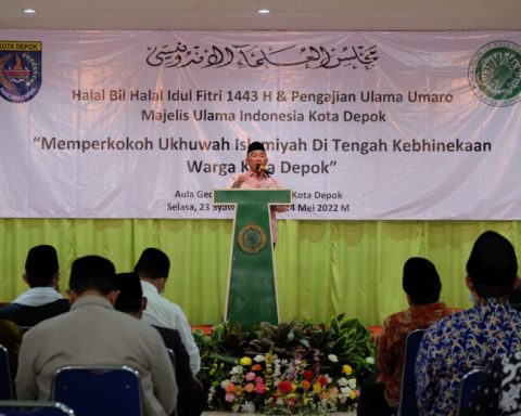 pojokdepok.com- Wali Kota Depok, Mohammad Idris menghadiri acara Halalbihalal yang diadakan Mejelis Ulama Indonesia (MUI) Kota Depok. Acara yang turut dihadiri oleh Kepala Kementerian Agama (Kemenag) Kota Depok, Asnawi serta perwakilan-perwakilan MUI tingkat kecamatan dan kelurahan ini, mengusung tema ‘Memperkokoh Ukhuwah Islamiah