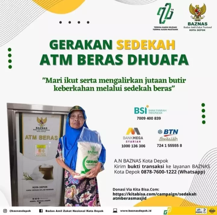 pojokdepok.com- Badan Amil Zakat Nasional (Baznas) Kota Depok meluncurkan inovasi baru berupa Anjungan Tunai Mandiri (ATM) Beras. Terobosan ini untuk mempermudah warga kurang mampu atau kaum duafa dalam memenuhi kebutuhan hidup.