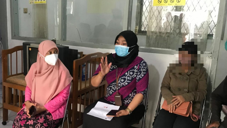 Kepala Dinsos Kota Depok, Asloe’ah Madjri, (paling kiri) bersama Kepala Bidang Rehabilitasi Sosial, Dinsos Kota Depok, Nita Ita Hernita (nomor dua dari kiri) saat memberikan pendampingan psikososial. (Foto : JD03/Diskominfo)