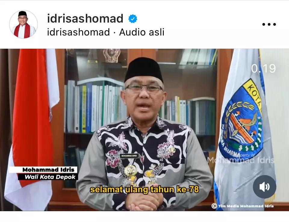 Video ucapan selamat untuk PMI tersebut disampaikan Kiai Idris, sapaan akrab Wali Kota Depok melalui akun Instagram pribadinya @idrisashomad yang diunggah Minggu (17/09/23) siang.