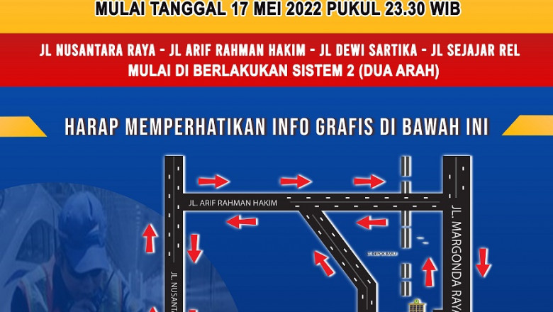 “Arus yang dari Jalan Dewi Sartika tidak boleh belok kanan ke Jalan Nusantara. Namun harus ke arah Sawangan, kemudian belok kanan di jembatan Sekolah Setia Negara dan lanjut Ke Jalan Salak Raya,” ujarnya.