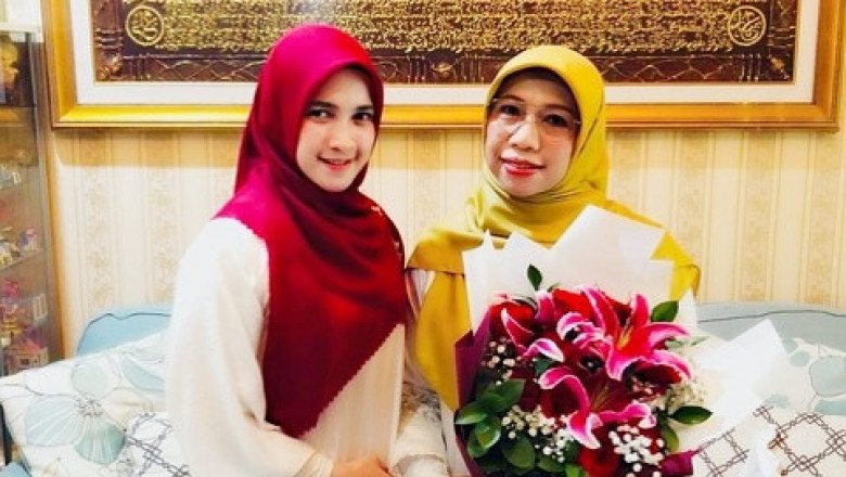 Bunda PAUD Kelurahan Tanah Baru Frina Shaurin bersama Bunda PAUD Kota Depok Elly Farida. (Foto :sebelum pandemi Covid-19).