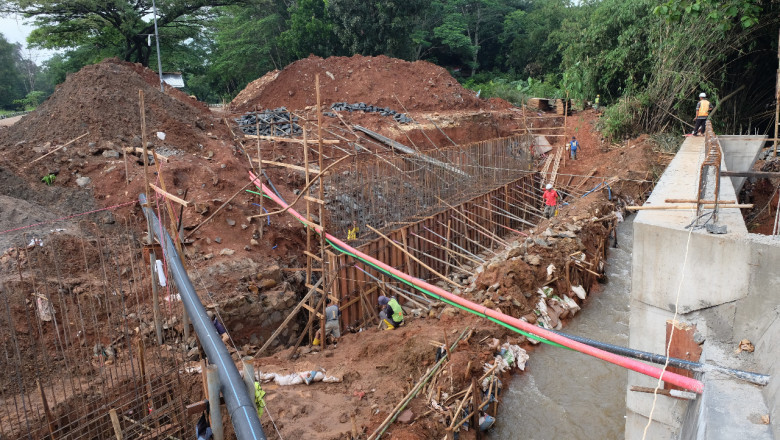 Progres pembangunan jembatan Grand Depok City (GDC) yang sudah memasuki tahap pengecoran opritan. (Foto: JD 01/Diskominfo).