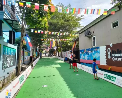 pojokdepok.com – Semarak Piala Dunia 2022 yang berlangsung di Qatar Uni Emirates Arab terasa hingga ke Kota Depok. Seperti yang dilakukan warga Cluster Cemara, Perumahan Depok Maharaja RT 01 RW 16, Kelurahan Rangkapan Jaya, Kecamatan Pancoran Mas (Panmas) yang menghias lingkungannya dengan