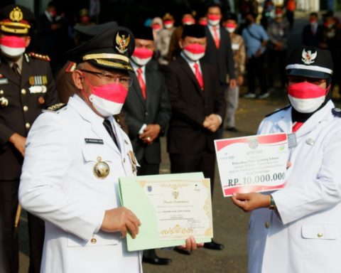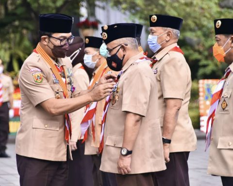 pojokdepok.com-Wali Kota Depok, Mohammad Idris menerima Lencana Panca Warsa yang disematkan langsung oleh Gubernur Jawa Barat (Jabar), Ridwan Kamil. Lencana tersebut disematkan kepada Mohammad Idris saat Peringatan Hari Pramuka Tingkat Provinsi Jabar Tahun 2021 di halaman Gedung Sate Bandung, Jumat (20/08/2021). “Alhamdulillah,