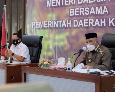 pojokdepok.com-Wali Kota Depok, Mohammad Idris melakukan rapat koordinasi (rakor) dengan Menteri Dalam Negeri (Mendagri), Tito Karnavian di Balai Kota Depok, Jumat (23/07/2021). Dalam rakor tersebut, terdapat beberapa pembahasan, di antaranya mengenai Pemberlakuan Pembatasan Kegiatan Masyarakat (PPKM), keterisian tempat tidur, vaksinasi hingga bantuan