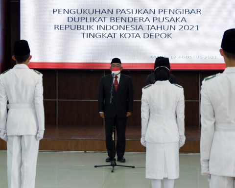 pojokdepok.com-Wali Kota Depok, Mohammad Idris mengukuhkan Pasukan Pengibar Bendera Pusaka (Paskibraka) tingkat Kota Depok yang akan bertugas dalam upacara Hari Ulang Tahun (HUT) ke-76 Republik Indonesia (RI) di Balai Kota Depok pada 17 Agustus 2021. “Atas nama pemerintah dan pribadi, saya ucapkan