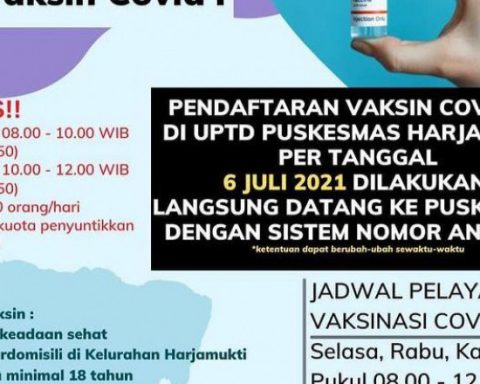 pojokdepok.com– Unit Pelaksana Teknis Dinas (UPTD) Puskesmas Harjamukti kini, tidak hanya melayani vaksinasi Covid-19 bagi warga yang telah mendaftar secara online, tetapi juga mereka yang mendaftar secara langsung di tempat. Semua itu guna memudahkan masyarakat mendapatkan vaksin. Kepala UPTD Puskesmas Harjamukti, Eni