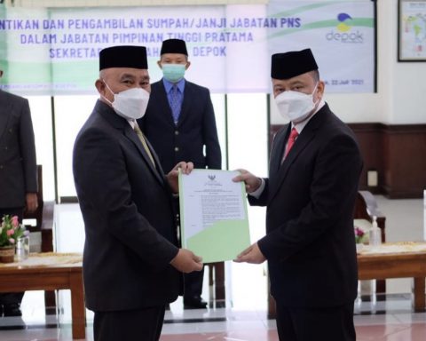 pojokdepok.com-Wali Kota Depok Mohammad Idris telah melantik Supian Suri sebagai Sekretatis Daerah (Sekda) definitif Kota Depok, Selasa (22/07/2021). Dalam proses Seleksi Terbuka Pengisian Jabatan Pimpinan Tinggi Pratama Sekda Kota Depok Tahun 2021, hingga pelantikan tersebut sudah melewati lima tahapan. Menurutnya, pelaksanaan seleksi