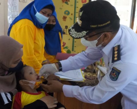 Camat Pancoran Mas, Syaiful Hidayat memberikan vitamin A kepada seorang balita di Posyandu Mawar RW 05, Perumahan Arco, Kelurahan Rangkapan Jaya Baru, kemarin (17/02/22). (Foto: istimewa) pojokdepok.com – Camat Pancoran Mas (Panmas), Syaiful Hidayat memantau langsung pelaksanaan pemberian vitamin A di Posyandu