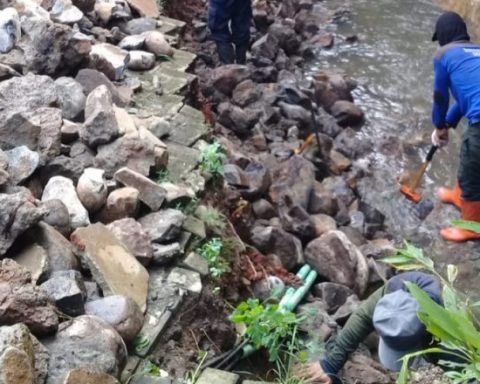 Satgas DPUPR Kota Depok saat membersihkan material longsor turap di Perumahan Puri Sriwedari, Kelurahan Harjamukti, Kecamatan Cimanggis. (Foto: istimewa) pojokdepok.com- Dinas Pekerjaan Umum dan Penataan Ruang (DPUPR) Kota Depok menerjunkan sebanyak satu regu Satuan Tugas (Satgas) untuk menangani longsor turap di Perumahan Puri