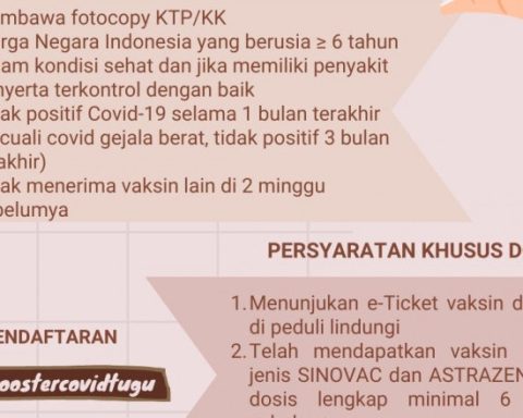 Pemberian imunisasi di Puskesmas Tugu. (Foto: Istimewa) pojokdepok.com – Unit Pelaksana Teknis Dinas (UPTD) Puskesmas Tugu mulai memberikan pelayanan vaksinasi Covid-19 dosis ketiga atau booster untuk masyarakat. Vaksin booster tersebut dilakukan di Puskesmas Tugu yang beralamat Jalan Kom. Jen. Pol.M. Jasin Nomor 71