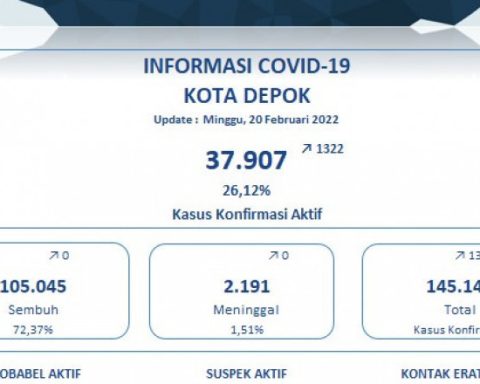 Data perkembangan kasus Covid-19 di Kota Depok per 20 Februari 2022. (Foto: istimewa). pojokdepok.com– Pemerintah Kota (Pemkot) Depok kembali memperbarui data perkembangan kasus Covid-19 di Kota Depok. Berdasarkan data yang dirilis per tanggal 20 Februari 2022, terjadi kenaikan yang signifikan pada kasus konfirmasi positif. Pada hari ini terdapat penambahan