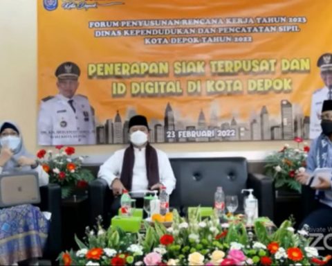 Renja PD Tahun 2022 secara virtual dan tatap muka di Kantor Disdukcapil Rabu (23/02/22). (Gambar : Tangkapan layar ) pojokdepok.com – Dinas Kependudukan dan Pencatatan Sipil (Disdukcapil) Kota Depok sudah merancang sejumlah program dan kegiatan melalui Forum Rencana Kerja (Renja) Perangkat Daerah