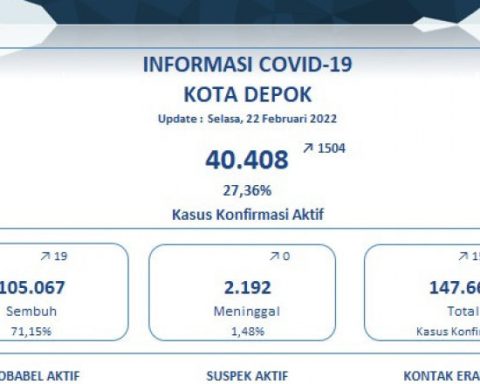 Data perkembangan kasus Covid-19 di Kota Depok per 22 Februari 2022. (Foto: istimewa). pojokdepok.com– Pemerintah Kota (Pemkot) Depok kembali memperbarui data perkembangan kasus Covid-19 di Kota Depok. Berdasarkan data yang dirilis per tanggal 22 Februari 2022, terjadi kenaikan kasus konfirmasi positif. Pada