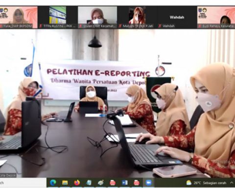Pelatihan E-Reporting yang diikuti oleh DWP Kota Depok secara virtual, Kamis (24/02/22). (Foto: tangkapan layar) pojokdepok.com- Sebagai upaya pengumpulan data laporan pelaksanaan program kerja, Dharma Wanita Kota Depok (DWP) dibekali pelatihan E-Reporting. Pelatihan ini sesuai dengan instruksi DWP Pusat yang tengah mengembangkan