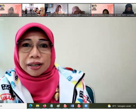 Penasihat DWP Kota Depok Elly Farida saat memberikan sambutan dalam kegiatan Pelatihan E-Reporting secara virtual, Kamis (22/02/22). (Foto: tangkapan layar) pojokdepok.com- Tidak bisa dimungkiri saat ini tengah terjadi pergeseran cara pelaporan kegiatan Dharma Wanita (DWP) Kota Depok dari yang manual, menjadi tersistematis