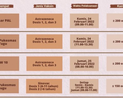 pojokdepok.com – Unit Pelaksana Teknis Dinas (UPTD) Puskesmas Tugu terus memberikan pelayanan vaksinasi Covid-19 untuk masyarakat Kelurahan Tugu. Komitmen tersebut dilakukan untuk meningkatkan capaian pemberian vaksinasi dosis pertama, kedua, dan ketiga atau booster. Kepala UPTD Puskesmas Tugu, Wara Pamungkas mengatakan, pihaknya memberikan