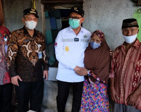Wakil Wali Kota Depok Imam Budi Hartono menyerahkan bantuan secara simbolis dengan meletakkan batu pertama pembangunan renovasi Rumah Tidak Layak Huni (RTLH) yang dicanangkan Pemerintah Kota Depok melalui Dinas Perumahan dan Permukiman bagi warga di wilayah Kelurahan Jatijajar Kecamatan Tapos, Jumat (10/12/21).