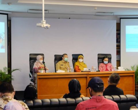 Menteri Pembedayaan Perempuan dan Perlindungan Anak (PPPA) RI, I Gusti Ayu Bintang Darmawati menyapa pengurus Forum Anak Depok yang sedang melaksanakan rapat kerja di Kantor Dinas Pemberdayaan Perempuan dan Perlindungan Anak Pengendalian Penduduk dan Kekuarga Berencana (DP3AP2KB), kemarin (01/03/22). (Foto: JD 01/Diskominfo) pojokdepok.com