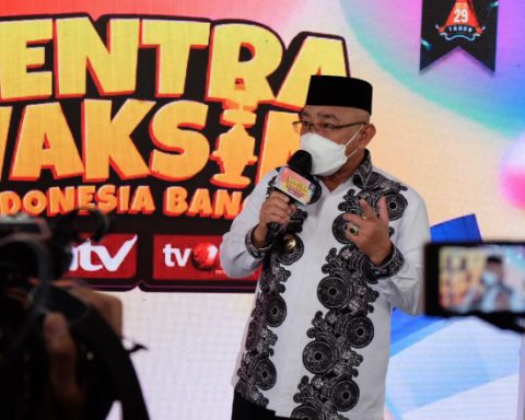 Wali Kota Depok Mohammad Idris saat memberikan sambutan pada live streaming ANTV & tvOne. (Foto: JD01/Diskominfo) pojokdepok.com – Wali Kota Depok Mohammad Idris memberikan apresiasi yang tinggi atas partisipasi warga Kota Depok dalam kegiatan Sentra Vaksin Indonesia Bangkit ANTV & tvOne. Sentra vaksinasi