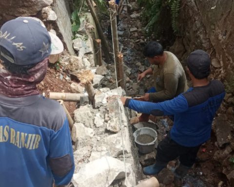 Penanganan lanjutan pembuatan turap, longsor SDN 1 Limo, Kecamatan Limo oleh Satgas DPUPR Kota Depok, Senin (21/03/22). (Foto: istimewa). pojokdepok.com- Dinas Pekerjaan Umum dan Penataan Ruang (DPUPR) Kota Depok tengah melakukan penanganan longsor SDN 1 Limo yang terjadi Selasa (15/03). Saat ini