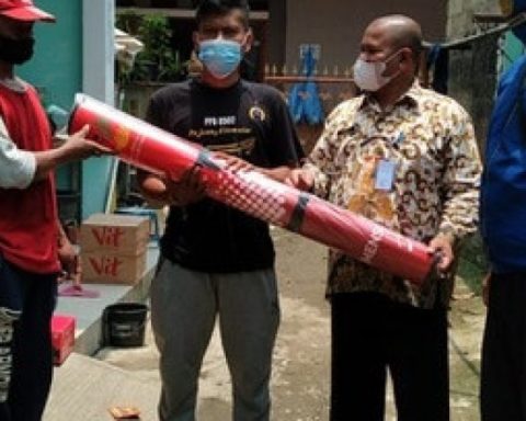 Kepala Seksi Perlindungan Korban Bencana Alam dan Sosial, Dinsos Depok, Sutadi (kedua kanan) memantau pemberian logistik kepada warga yang terkena bencana. (Foto : Istimewa) pojokdepok.com – Taruna Siaga Bencana (Tagana) Kota Depok terus meningkatkan kesiapsiagaan dalam melakukan penyelamatan dan pemberian bantuan jika terjadi