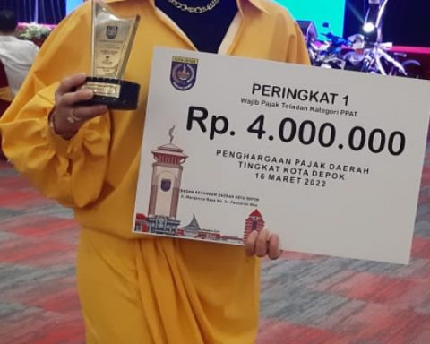 Penerima penghargaan katagori Pejabat Pembuat Akta Tanah (PPAT) Terbaik I, Isa Meilia. (Foto: JD 08/Diskominfo). pojokdepok.com- Penghargaan Pajak Daerah yang rutin dilaksanakan Pemerintah Kota (Pemkot) Depok, mendapat apresiasi dari berbagai pihak. Salah satunya Manajemen The Margo Hotel yang menjadi salah satu penerima