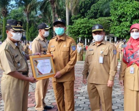 Lurah Cipas, Syahrudin saat menerima penghargaan Juara I dalam Capaian Indikator Kesehatan di Kelurahan Kota Depok yang diserakan oleh Wakil Wali Kota Depok Imam Budi Hartono. (Foto: JD01/Diskominfo) pojokdepok.com – Kelurahan Cisalak Pasar (Cipas), Kecamatan Cimanggis menjadi juara pertama dalam Capaian Indikator Kesehatan