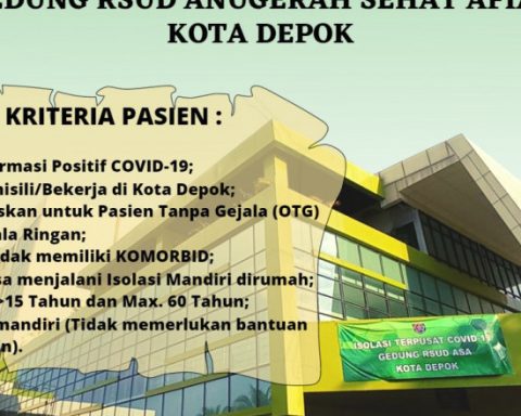 pojokdepok.com – Tempat isolasi terpusat (isoter) Covid-19 Kota Depok telah dibuka di Rumah Sakit Umum Daerah (RSUD) Anugerah Sehat Afiat (ASA) oleh Pemerintah Kota (Pemkot) Depok. Tempat isoter tersebut mulai beroperasi sejak 1 April 2022. Direktur RSUD ASA Kota Depok, Enny Ekasari