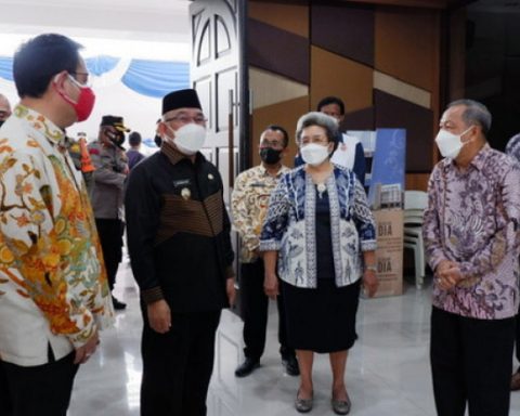 Wali Kota Depok Mohammad Idris (kedua kiri ) berbincang dengan pengurus GBI Cimanggis terkait penerapan protokol kesehatan. (Foto : JD01/Diskominfo) pojokdepok.com – Wali Kota Depok Mohammad Idris, hari ini meresmikan rumah ibadah Gereja Bethel Indonesia (GBI) Cimanggis di Kelurahan Sukamaju Kecamatan Tapos. Pada