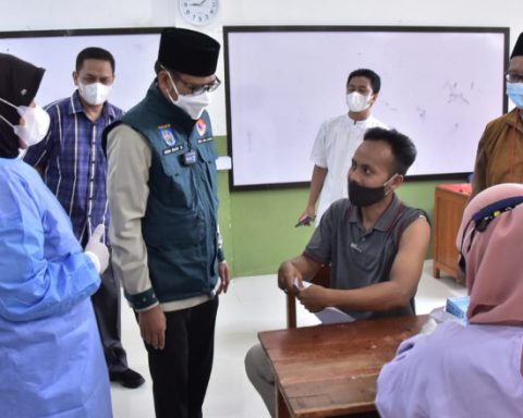 Wakil Wali Kota Depok Imam Budi Hartono melalukan peninjauan pelaksanaan vaksinasi di di SMK Bina Mulia, di Jalan Puskesmas RW. 04, Kelurahan Pasir Putih Kecamatan Sawangan pada Minggu (24/10/21). (Foto : Istimewa) pojokdepok.com – Wakil Wali Kota Depok, Imam Budi Hartono mengatakan, Pemerintah