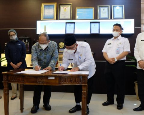 Penandatanganan Perjanjian kerja sama Badan Litbang SDM Kemenkominfo RI dengan Pemerintah Kota Depok terkait Rencana Kerja Peningkatan Kapasitas Sumber Daya Manusia (SDM) Digital di Ruang Nusa Indah, Balai Kota Depok, Rabu (06/04/22). (Foto: Diskominfo). pojokdepok.com- Pemerintah Kota (Pemkot) melakukan penandatangan nota kesepahaman atau