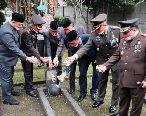 Wali Kota Depok Mohammad Idris bersama Forkopimda melakukan tabur bunga dalam rangka memperingati Hari Pahawan di Taman Makam Pahlawan (TMP) Kalimulya, Rabu (10/11/21). (Foto: JD 01/Diskominfo) pojokdepok.com- Memaknai Hari Pahlawan yang jatuh pada hari ini, Wali Kota Depok Mohammad Idris berpesan kepada seluruh