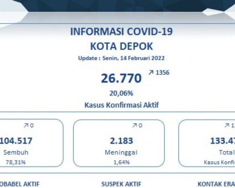 Data perkembangan kasus Covid-19 di Kota Depok, Senin (14/02/2022). (Foto: istimewa). pojokdepok.com – Pemerintah Kota (Pemkot) Depok kembali memperbarui data perkembangan kasus Covid-19. Berdasarkan data yang dirilis per 14 Februari 2022, masih terjadi kenaikan yang signifikan pada kasus konfirmasi harian. Pada data